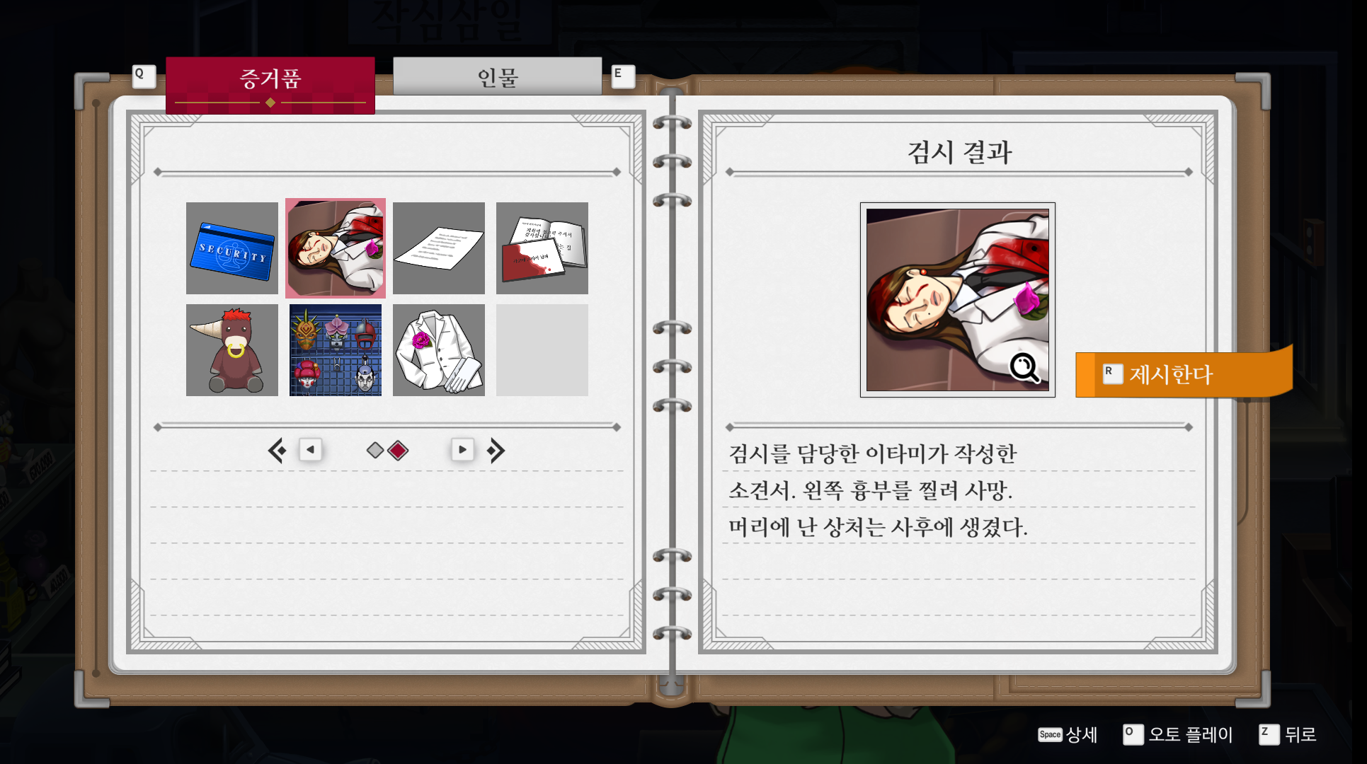 나츠미에게 검시 결과 제시