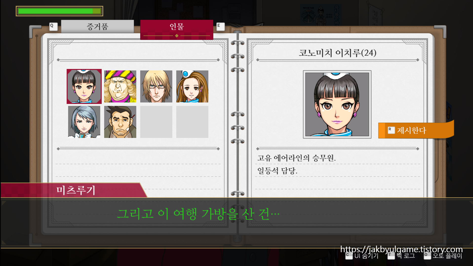 | [역전검사 1 공략] ep.2 역전 에어라인 - 후편 2 (0) | 2025.03.16 |